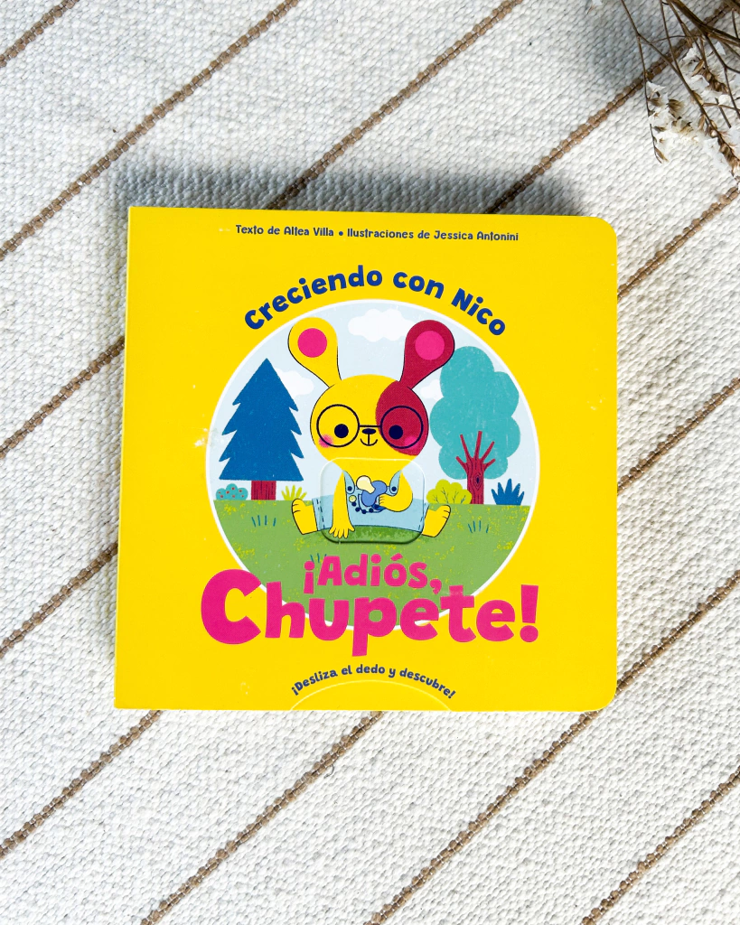 ¡Adiós, chupete! es un libro diseñado para apoyar a los niños en el momento en que se enfrentan a uno de los primeros obstáculos de su corta existencia: ¡prescindir del chupete! Su protagonista es Nico, un conejito con el que todos los niños pueden identificarse y que como ellos, no quiere separarse de su querido chupete. ¡Desliza el dedo y descubre esta historia!
