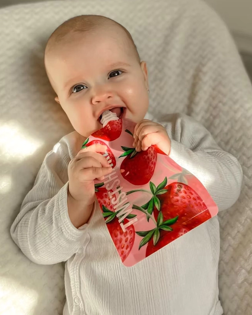 Las squeeze bags de Twistshake son ideales cuando vas a estar fuera de casa. Podés rellenar la bolsita reutilizable con purés o batidos caseros.