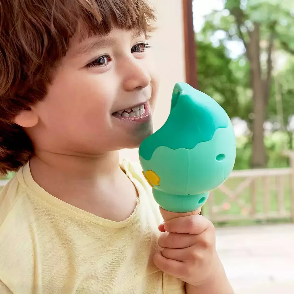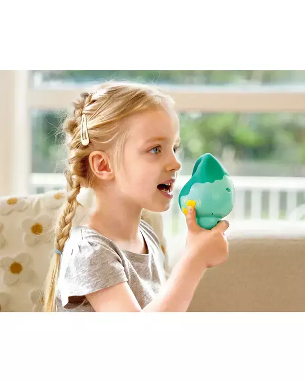 EFECTOS DE VOZ: Al girar el extremo de la concha, los niños pueden añadir diferentes efectos de voz a sus grabaciones: ¡robóticos, de ondas o de burbujas!