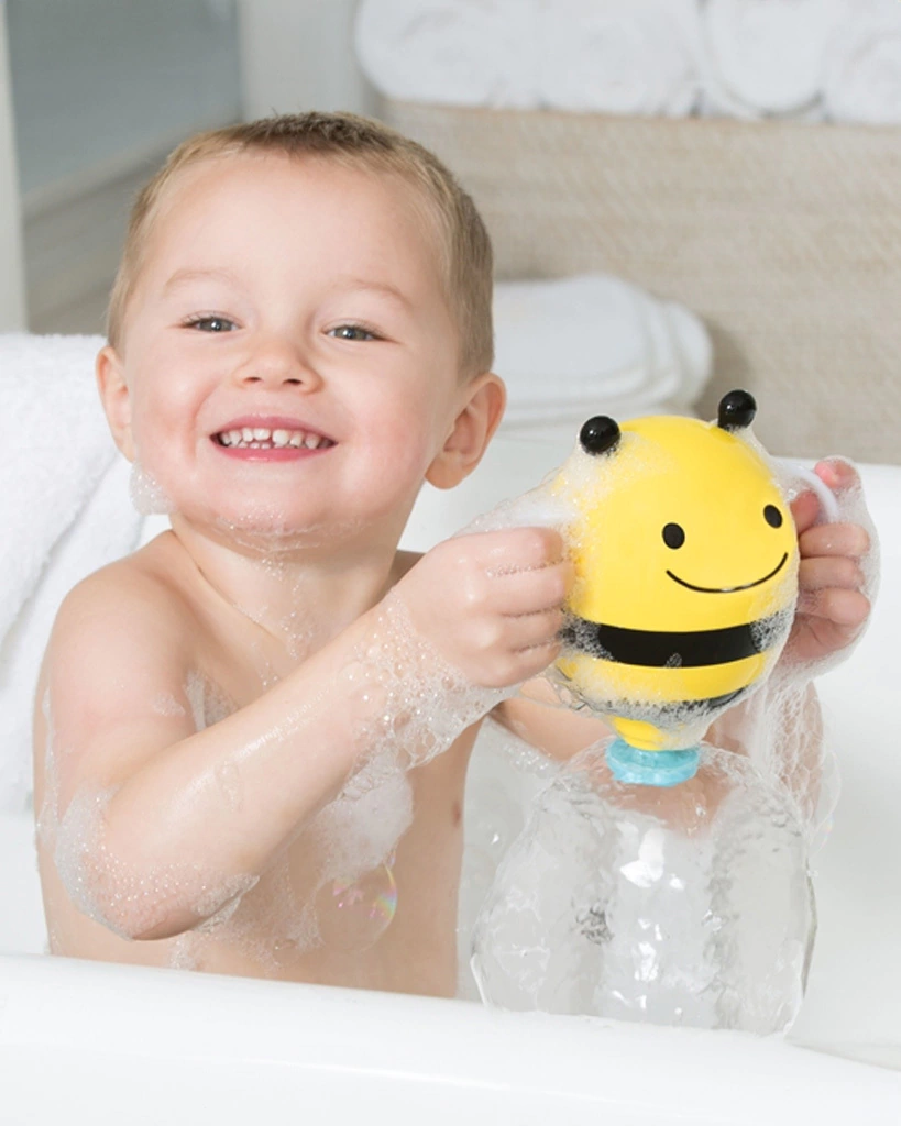 Juego de baño Para Bebés y niños. Modo de uso, simplemente sumerja la abeja en el agua, luego sáquela por los mangos y disfrute con su hijo del divertido efecto paraguas de agua. El bebé se maravillará del agua en cascada.