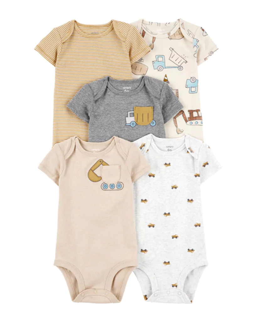 Confeccionados en suave algodón, este pack de 5 bodies es perfecto para tu bebé.