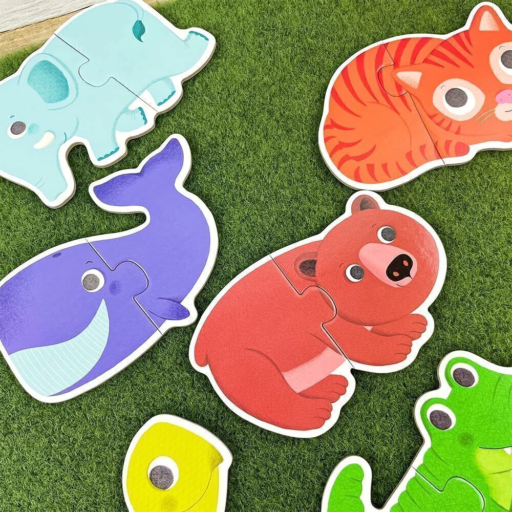 Un juego ideal para los más pequeños que comienzan a descubrir el mundo de los rompecabezas. Con 10 puzzles de 2 piezas con siluetas de animales, los niños podrán asociar las partes del cuerpo y armar figuras completas de forma lúdica y sencilla.