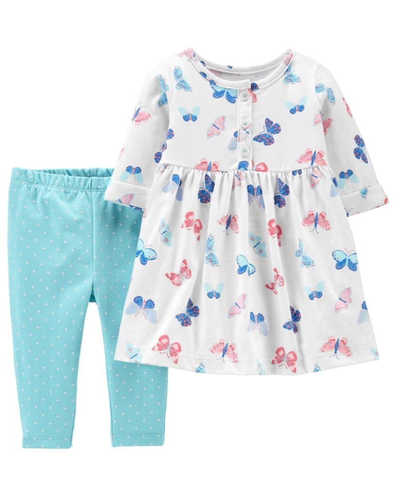 Para usarlos juntos o separados. Este set tiene un vestido de jersey de manga larga y un par de calzas elásticas.
